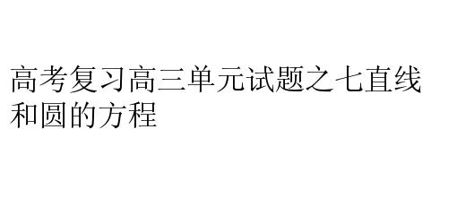 高考复习高三单元试题之七直线和圆的方程