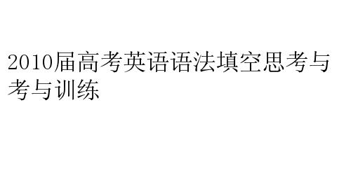 2010届高考英语语法填空思考与训练