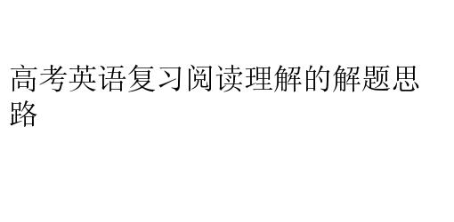 高考英语复习阅读理解的解题思路