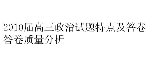 2010届高三政治试题特点及答卷质量分析