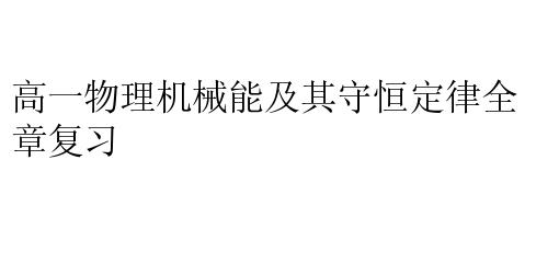 高一物理机械能及其守恒定律全章复习