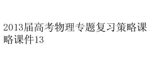 2013届高考物理专题复习策略课件13