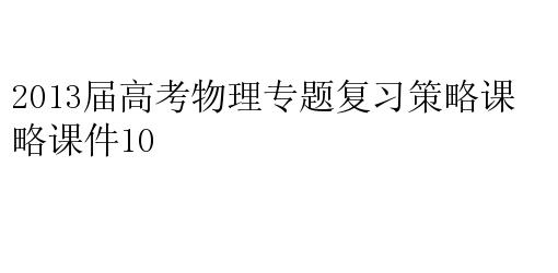 2013届高考物理专题复习策略课件10