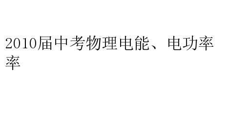 2010届中考物理电能、电功率