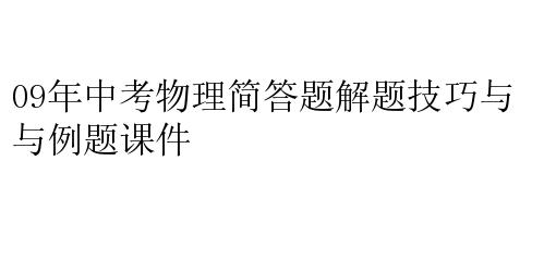 09年中考物理简答题解题技巧与例题课件