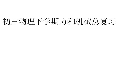 初三物理下学期力和机械总复习