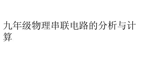 九年级物理串联电路的分析与计算