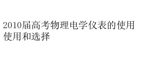 2010届高考物理电学仪表的使用和选择