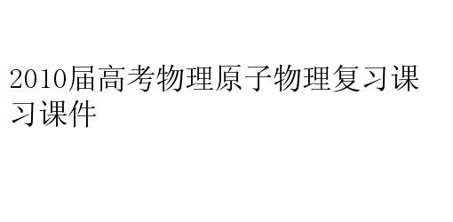 2010届高考物理原子物理复习课件