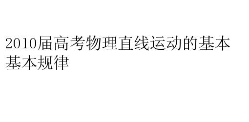 2010届高考物理直线运动的基本规律