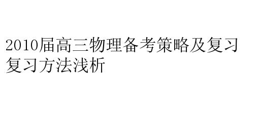 2010届高三物理备考策略及复习方法浅析