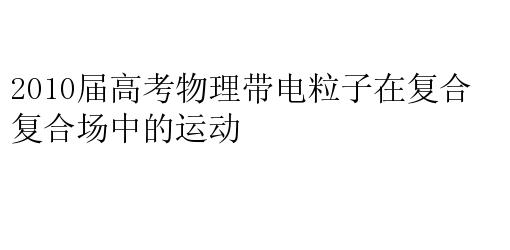 2010届高考物理带电粒子在复合场中的运动