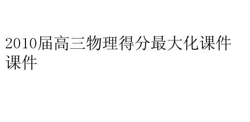 2010届高三物理得分最大化课件