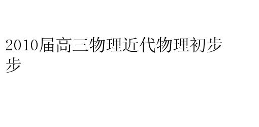 2010届高三物理近代物理初步