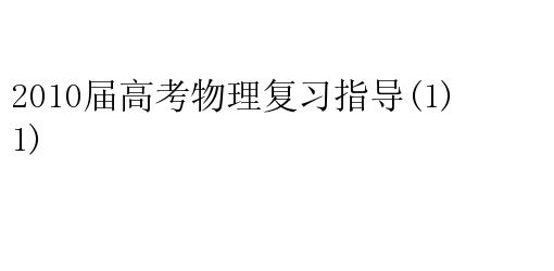 2010届高考物理复习指导(1)