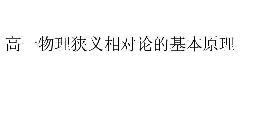 高一物理狭义相对论的基本原理