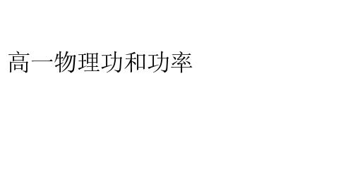高一物理功和功率