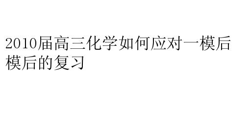 2010届高三化学如何应对一模后的复习