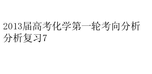 2013届高考化学第一轮考向分析复习7