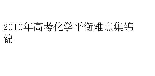 2010年高考化学平衡难点集锦