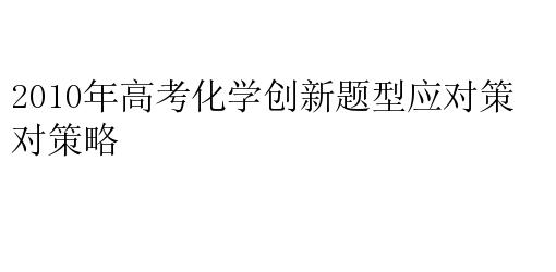 2010年高考化学创新题型应对策略