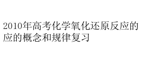 2010年高考化学氧化还原反应的概念和规律复习