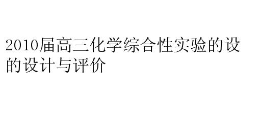 2010届高三化学综合性实验的设计与评价
