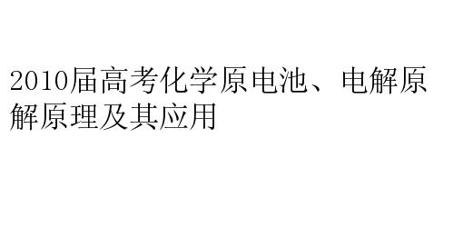 2010届高考化学原电池、电解原理及其应用