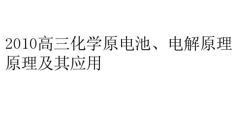2010高三化学原电池、电解原理及其应用