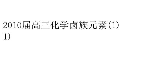 2010届高三化学卤族元素(1)