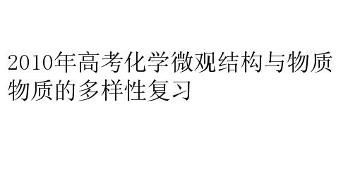 2010年高考化学微观结构与物质的多样性复习
