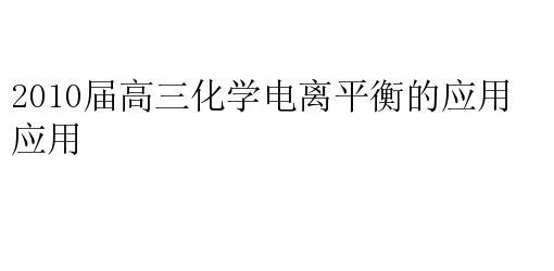 2010届高三化学电离平衡的应用