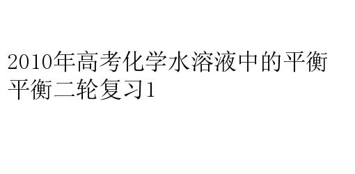 2010年高考化学水溶液中的平衡二轮复习1