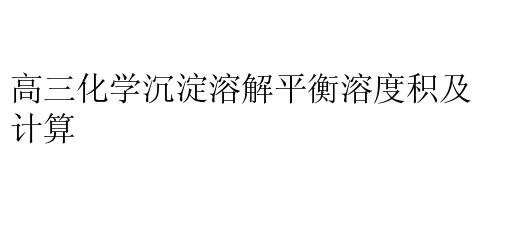 高三化学沉淀溶解平衡溶度积及计算