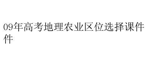 09年高考地理农业区位选择课件