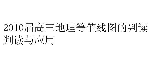 2010届高三地理等值线图的判读与应用