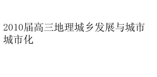 2010届高三地理城乡发展与城市化