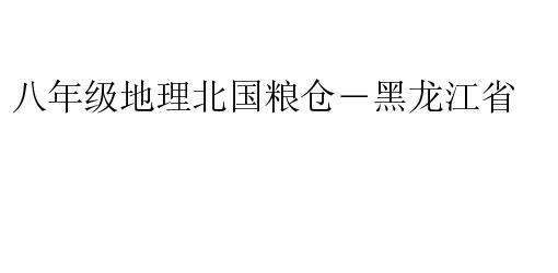 八年级地理北国粮仓―黑龙江省