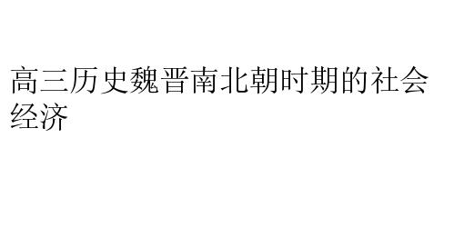 高三历史魏晋南北朝时期的社会经济
