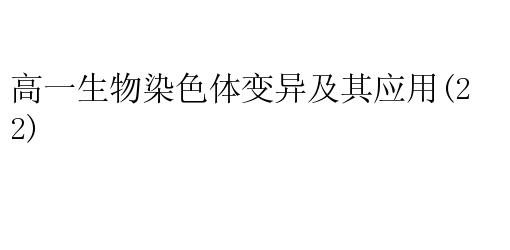 高一生物染色体变异及其应用(2)