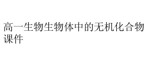 高一生物生物体中的无机化合物课件