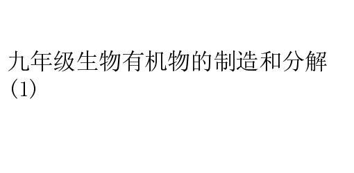 九年级生物有机物的制造和分解(1)