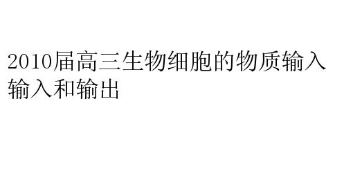 2010届高三生物细胞的物质输入和输出
