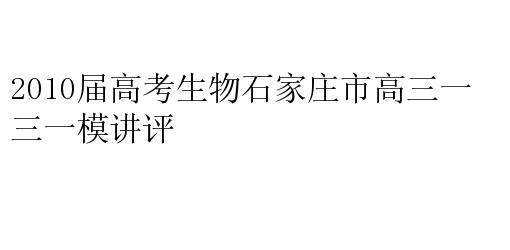 2010届高考生物石家庄市高三一模讲评