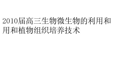 2010届高三生物微生物的利用和植物组织培养技术