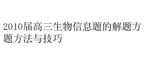 2010届高三生物信息题的解题方法与技巧