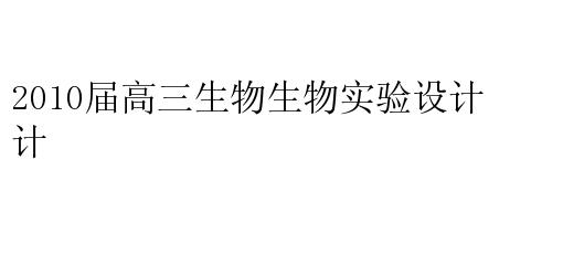 2010届高三生物生物实验设计