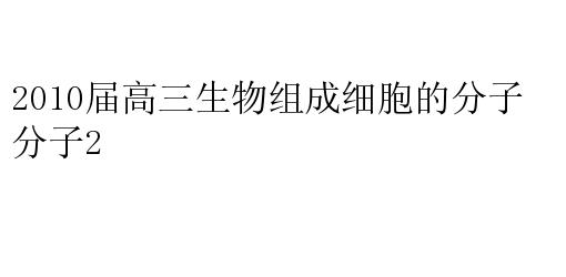 2010届高三生物组成细胞的分子2