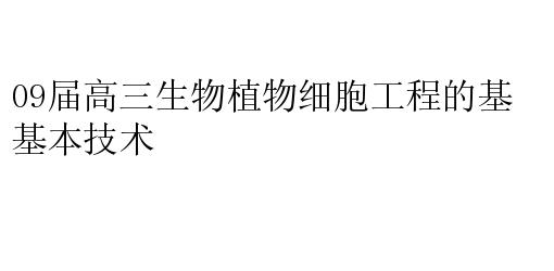 09届高三生物植物细胞工程的基本技术