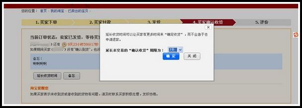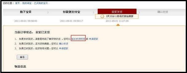 若商家选择运送方式为快递,买家确认收货超时为10天;若运送方式为平邮,买家确认收货超时为30天。买家或商家都可延长收货时间。若是买家延长收货,普通实物担保交易在卖家已发货状态,离确认收货超时结束还剩3天时(包括:快递、平邮、EMS、无需快递),买家可以延长收货超时,次数只能申请1次;超时天数可申请3天(如图1),若是商家延长收货,卖家可以给买家延长交易收货超时时间,分别可延长3、5、7、10天,不限制次数(如图2)。这个和买家退货,商家超时的状况相同,但退货过程中无法延长商家确认收货时间。